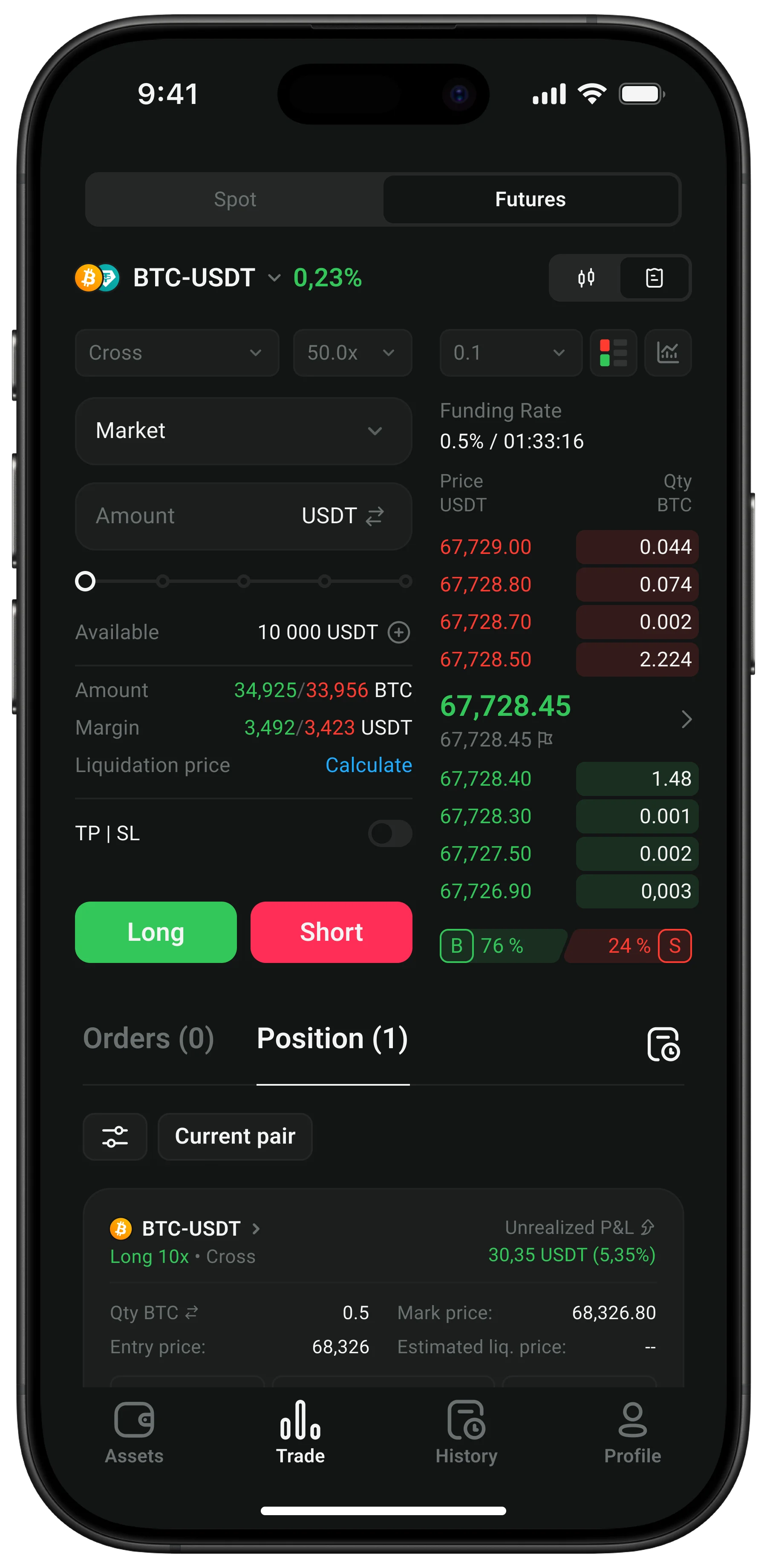 See the full market picture. Deep liquidity, tight spreads, and instant updates for precise trading decisions.